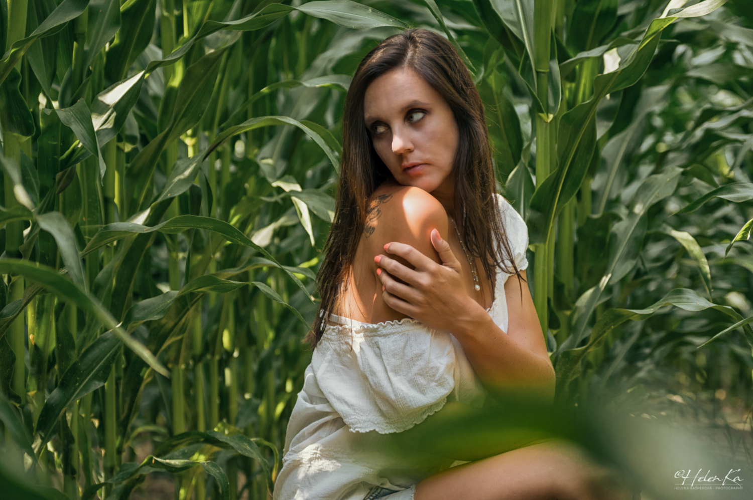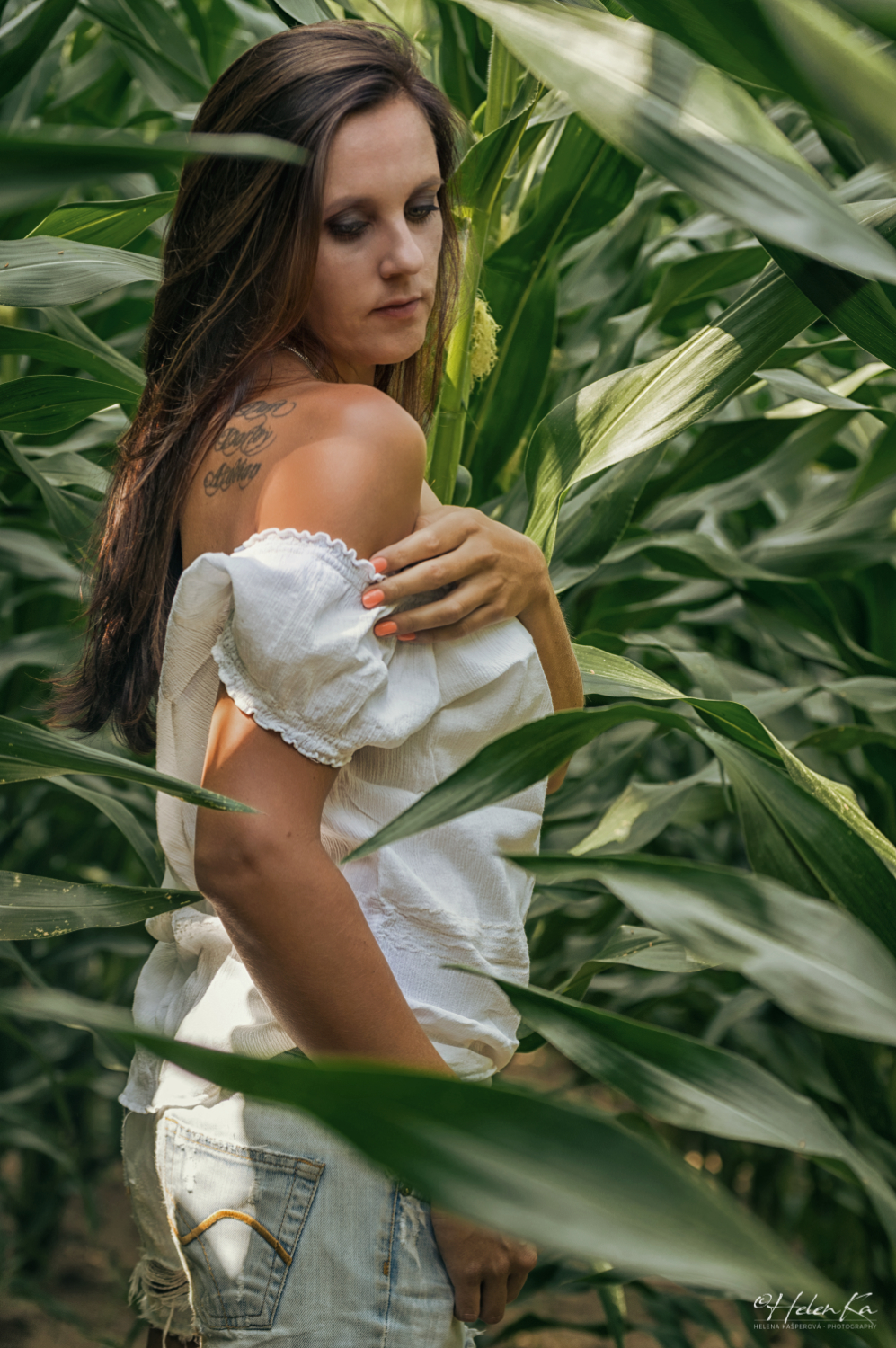 Je tolik míst, kde se dá fotit. Tolik krásných barev je kolem nás. Je libo barevné léto plné květin, nebo hnědý, teplý podzim. A co takhle zelená? A tak jsem vytvoříla fotky v kukuřičném poli, tam je zelené až až. Sklizeň kukuřice se blíží tak si na focení pospěště dokud je čas..