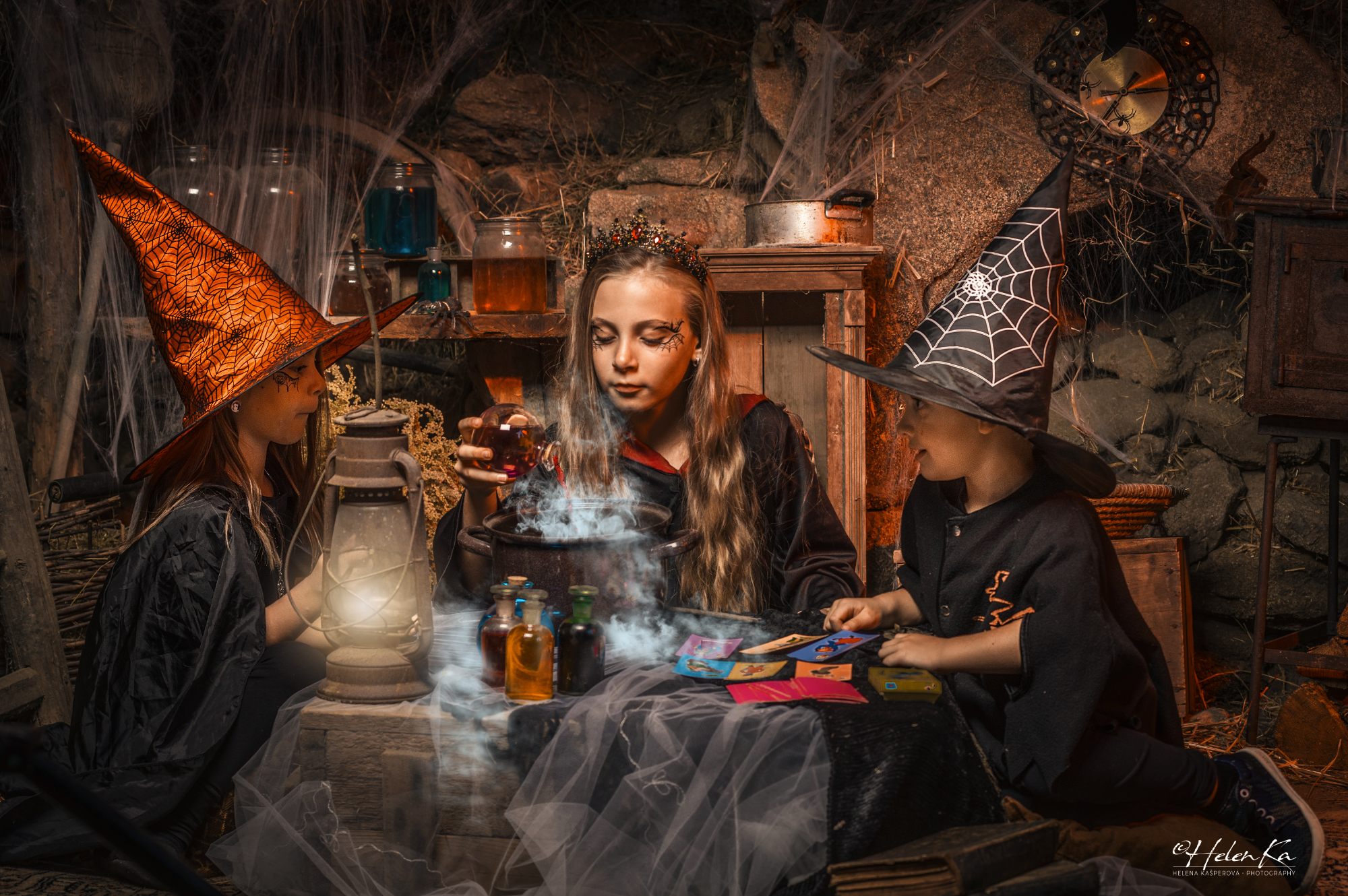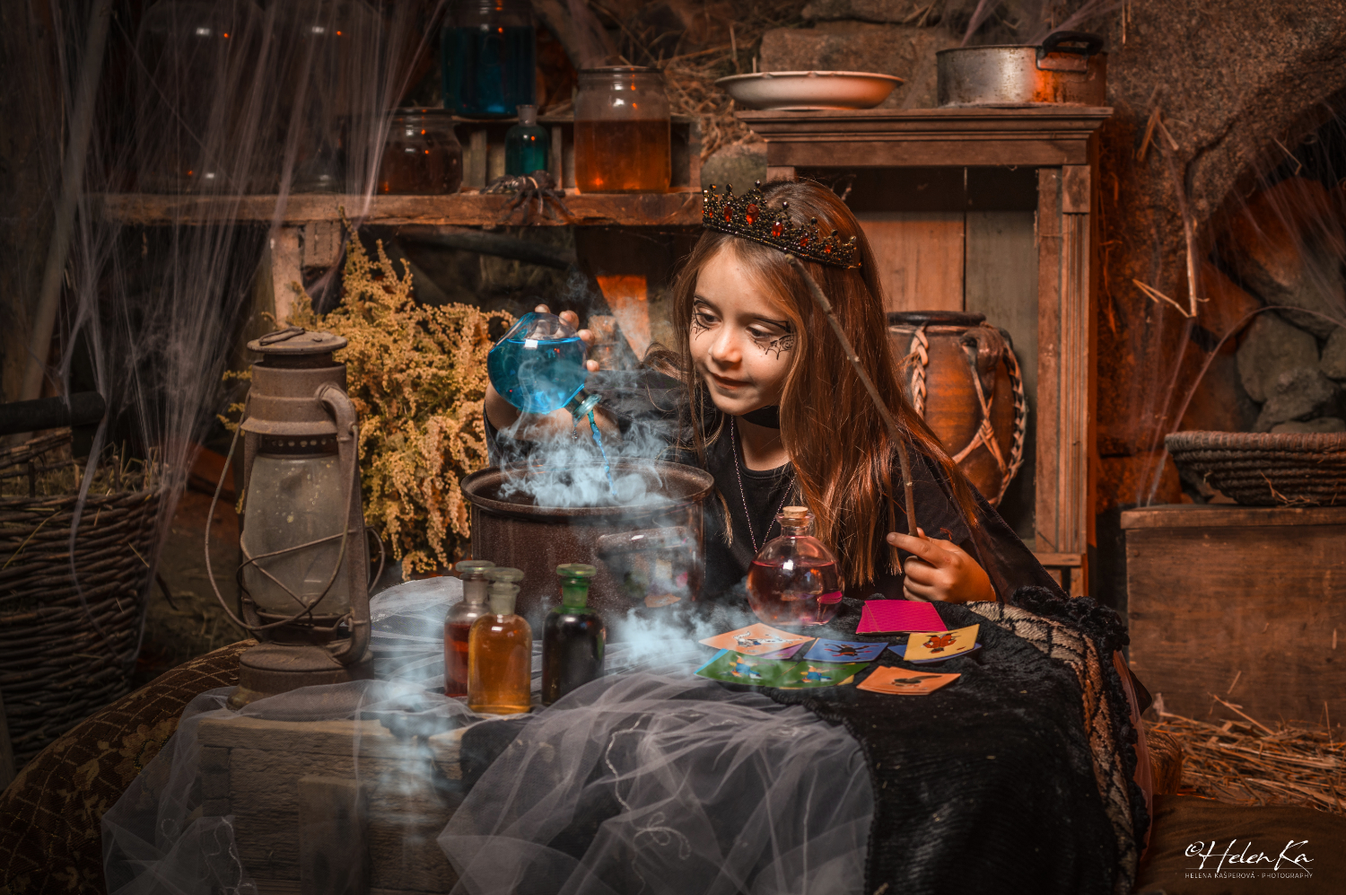 Aspoň na malou chvíli. Které dítě by nechtělo být na chvilku kouzelníkem? Umět tak vyčarovat na co si pomyslí! A tak focení hrou jsem si pro vás připravila na víkend 28.9.-29.9. a 5.10.-6.10.2024. Naše stodola se opět po roce proměnila v čarodějnické doupě, kde potkáte pavouky, netopýry a spoustu spoustu pavučin. Vstup tedy jen pro odvážné :). Pro děti i dospělé mám připavené rekvizity všeho druhu – klobouky, pláště, čarodějnické rukavice, hůlky, magickou kouly, náhrdlníky, amulety, tetování na obličej, čelenku s drahokami. Za cenu 990 Kč získáte 4 magické fotografie v elektronické podobě. Těším se na vás v Bořené hoře u Štětkovic (8km od Sedlčan).